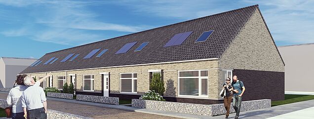 In 2023 startte we met de bouw van de vier energiezuinige multifunctionele woningen aan het Ravelijn in Sas van Gent. Aannemersbedrijf van der Poel ontwikkelt en bouwt de woningen. In januari 2024 ontvingen de nieuwe huurders hun sleutel.