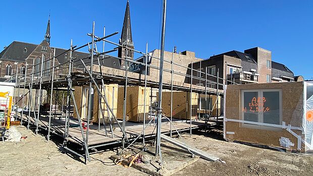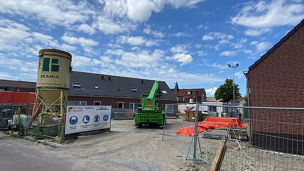 Aan de Tramstraat werkt de aannemer hard aan de nieuwbouw van de dertien multifunctionele woningen. Aan de kant waar de negen woningen komen, is al aardig wat te zien. Het metselwerk is inmiddels klaar tot aan de verdiepingsvloer. Aan de andere kant van de straat is inmiddels de vloer op de begane grond gestort. Nu volgt het plaatsen van de binnenwanden.