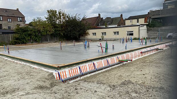 De fundering ligt erin en de vloeren op de begane grond worden nu gestort. Daarna start de aannemer met het plaatsen van de binnenwand (houtskeletbouw). We hopen de woningen in december op te leveren.