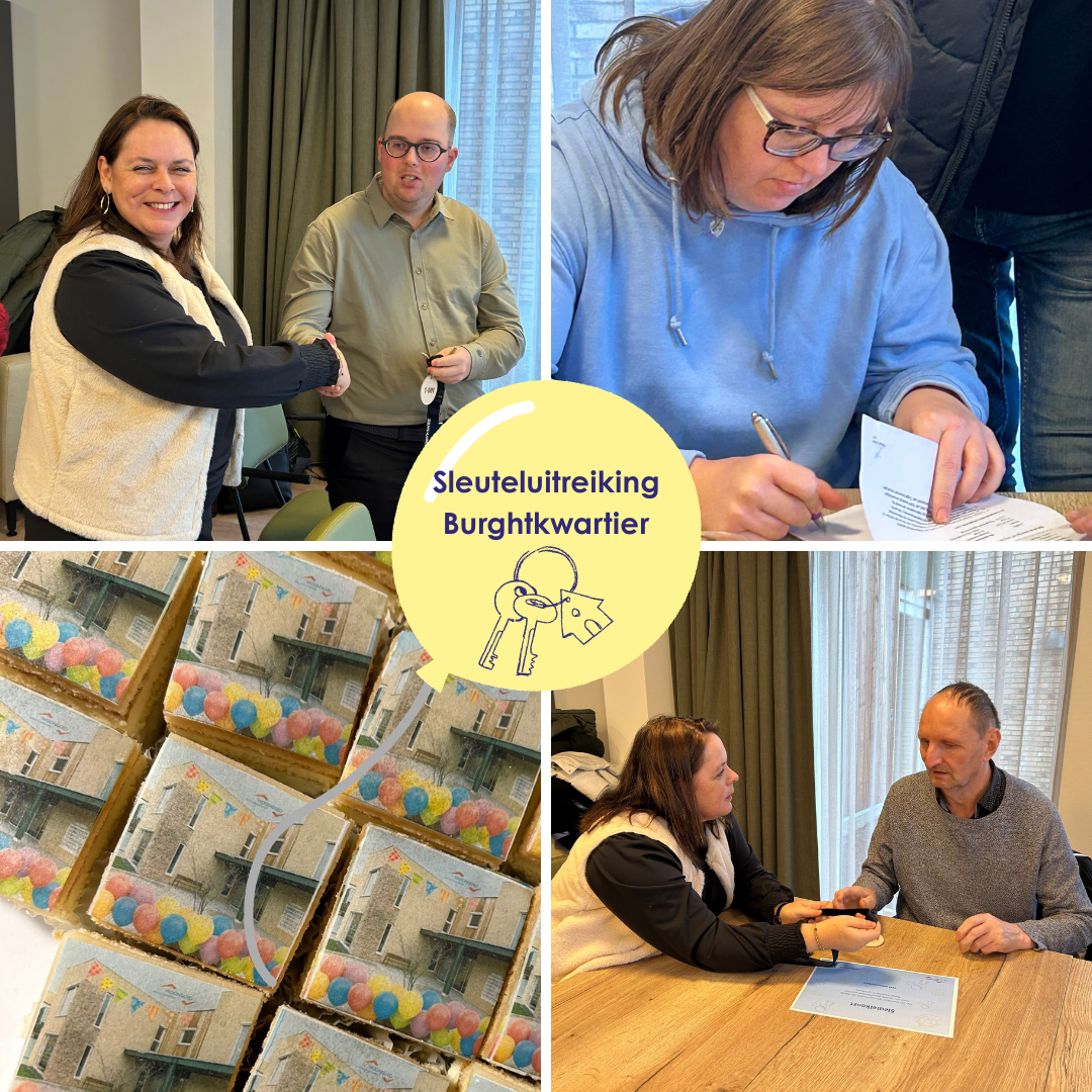 De verhuizing van de bewoners van het nieuwe gebouw is in volle gang. Tussen de verhuisdozen reikten Tragel en Woongoed Zeeuws-Vlaanderen vandaag de sleutels uit aan de eerste nieuwe bewoners. Het Burghtkwartier is de nieuwe woonzorg- en dagbestedingslocatie van Tragel in Oostburg voor mensen met een verstandelijke beperking. Na een lange voorbereidingstijd vierden wij deze mijlpaal feestelijk met taart en een presentje voor de nieuwe bewoners.