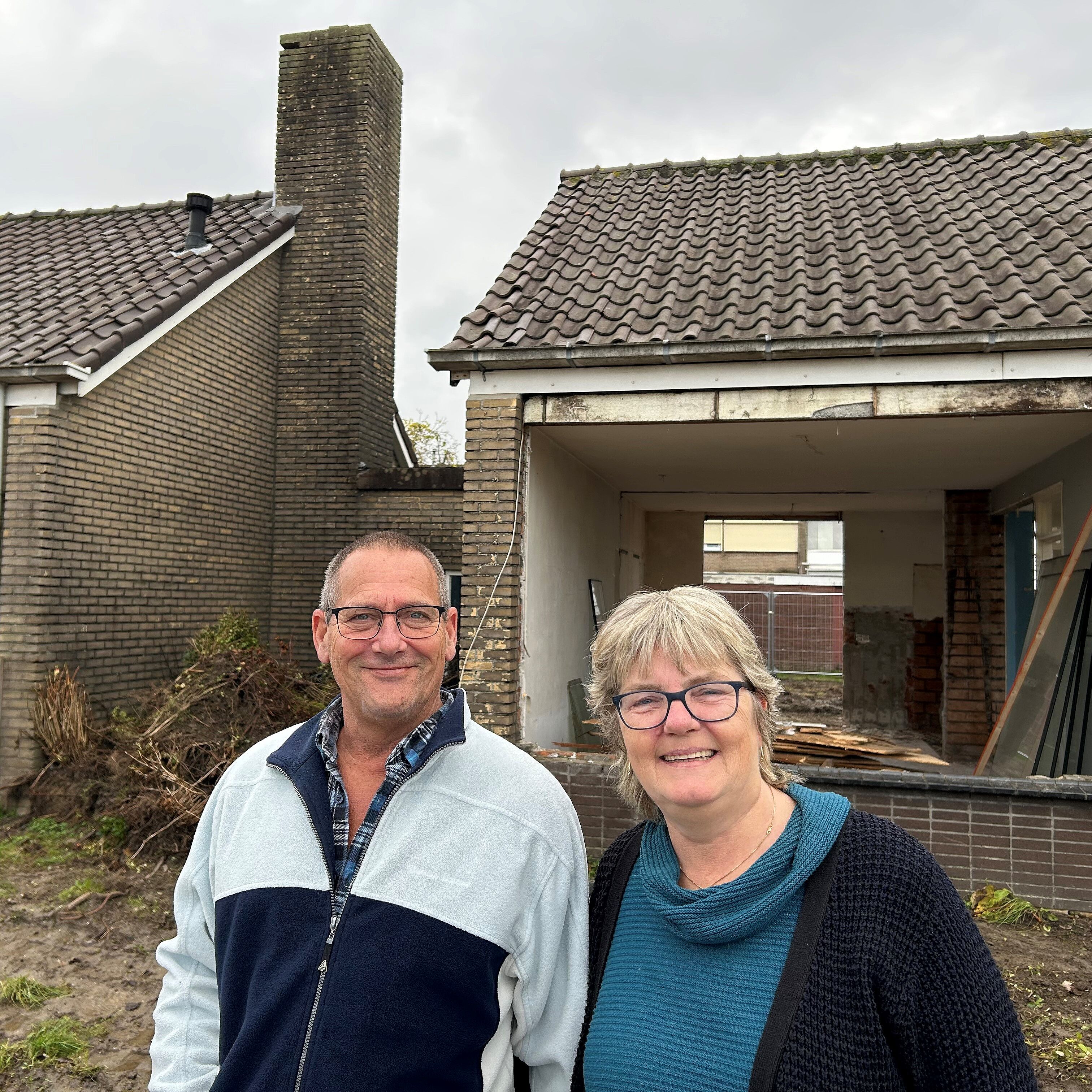 "Alleen de buitenmuren blijven staan”, legt Jacky uit. “Verder wordt alles vernieuwd. Zelfs het dak. Ook komt er een vaste trap naar zolder waar een extra slaapkamer komt. Van een seniorenwoning maken ze een duurzame multifunctionele woning. De extra kamer vindt onze kleindochter prachtig. Dan kan ze daar straks slapen in een groot bed!”