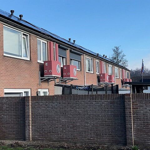 Zes woningen aan de Bolraapstraat zijn onlangs verduurzaamd. We hebben deze woningen volledig elektrisch (full-electric) gemaakt waardoor ze geen gas meer verbruiken. Hiervoor plaatsten wij een hoog-temperatuurwarmtepomp die zorgt voor de verwarming via de bestaande radiatoren. Deze is gekoppeld aan een boilervat dat zorgt voor warm water. De installatie is op de zolder geplaatst, behalve de buitenunit van de warmtepomp. Die hangt aan de achtergevel.