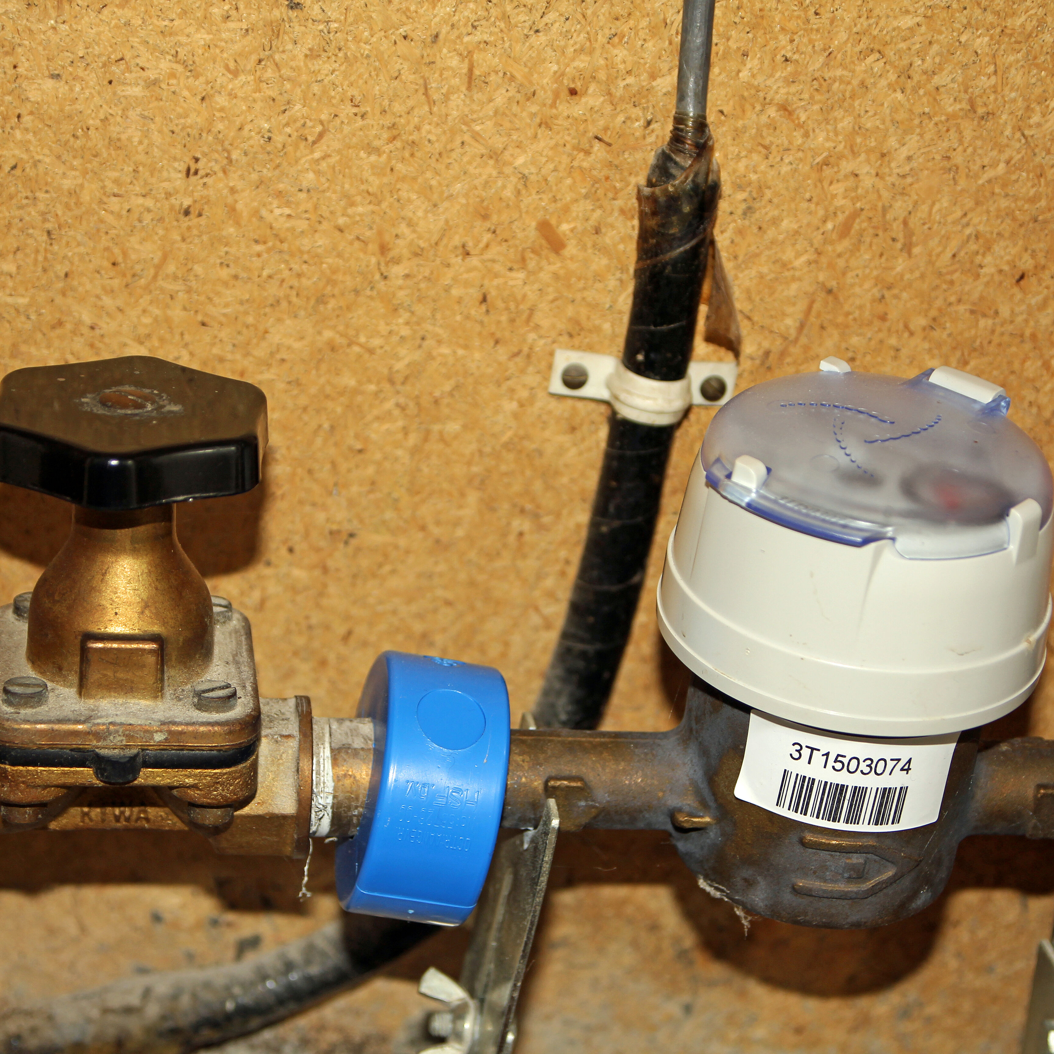 Op de watermeter zit een draaiknop of hendel. Vaak staat er ‘hoofdkraan’ op. Mocht er bijvoorbeeld een leiding springen dan kunt hiermee direct de hoofdkraan uitzetten.